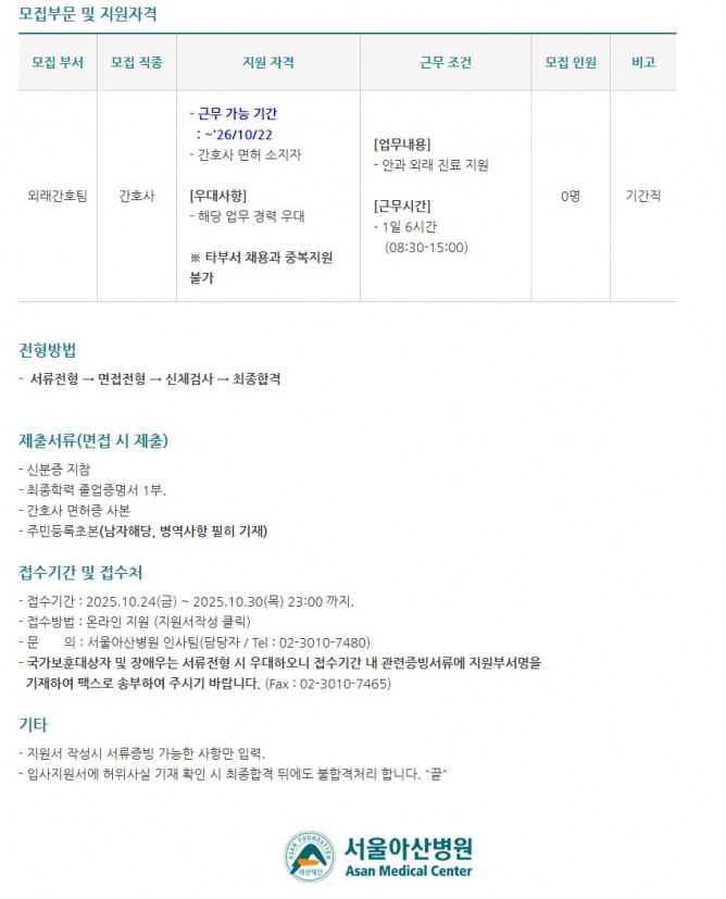 25.10.24 ~ 25.10.30외래간호팀 간호사 모집