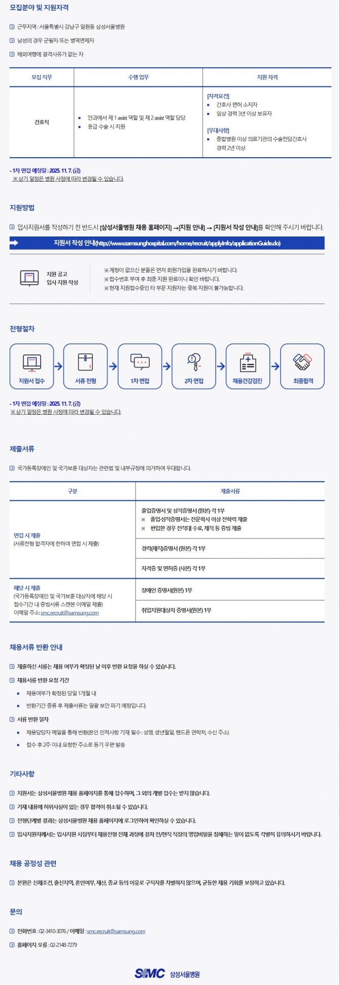 25.10.27 ~ 25.11.03안과 전담간호사(수술) 경력직 채용