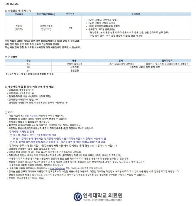 25.10.27 ~ 25.11.02간호사(계약직) 세브)영상의학팀 25.10-2 모집