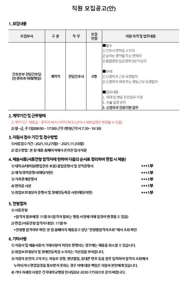 25.10.27 ~ 25.11.03신경외과 전담간호사 채용