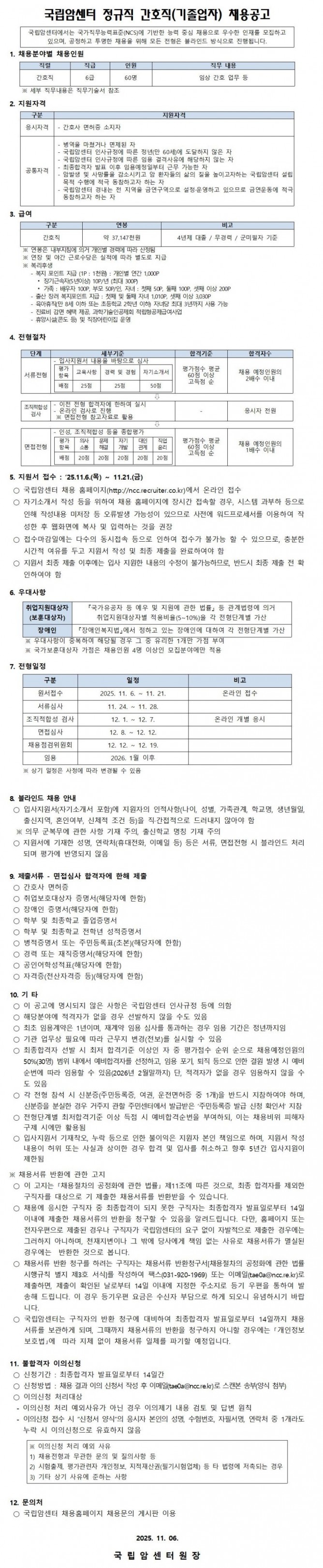 25.11.06 ~ 25.11.21정규직 간호직(기졸업자) 채용공고