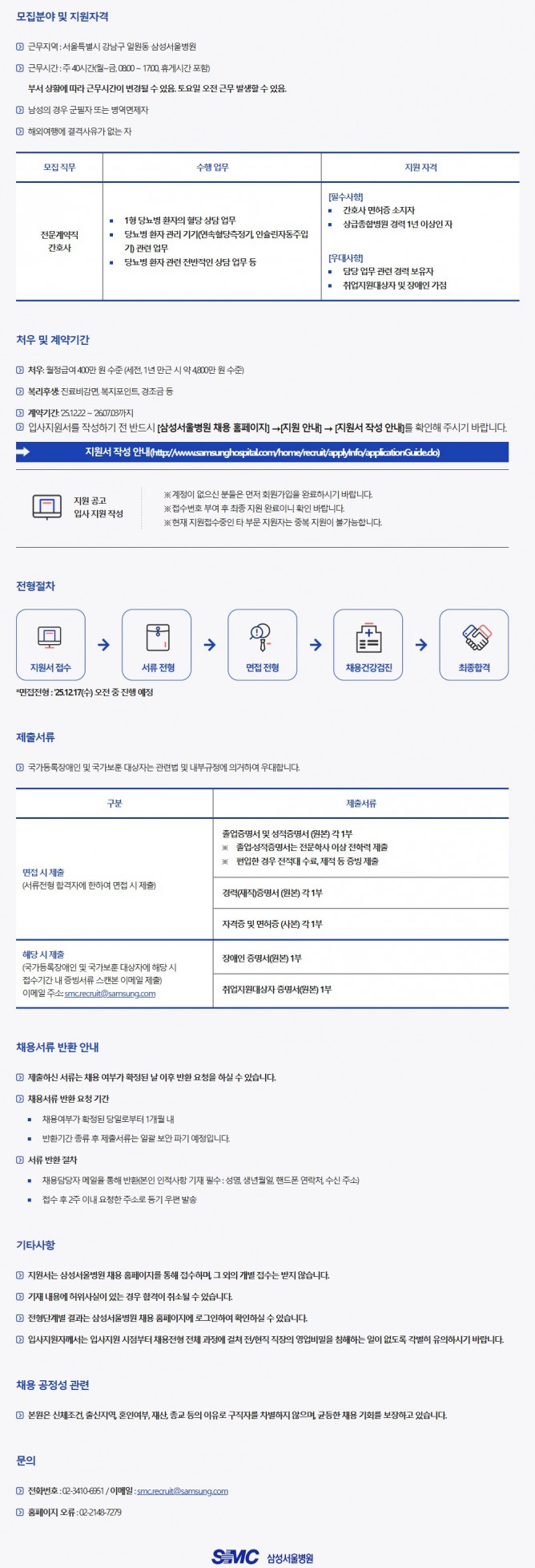 25.12.09 ~ 25.12.15내분비대사내과 계약직 간호사 채용(기간한정)