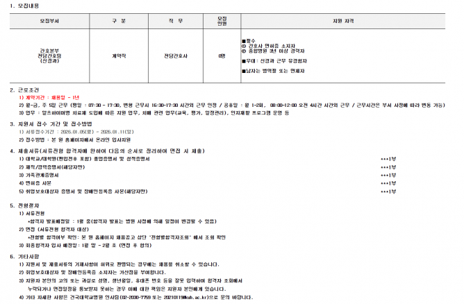 26.01.05 ~ 26.01.11[계약직] 전담간호팀(신경과) 전담간호사 채용