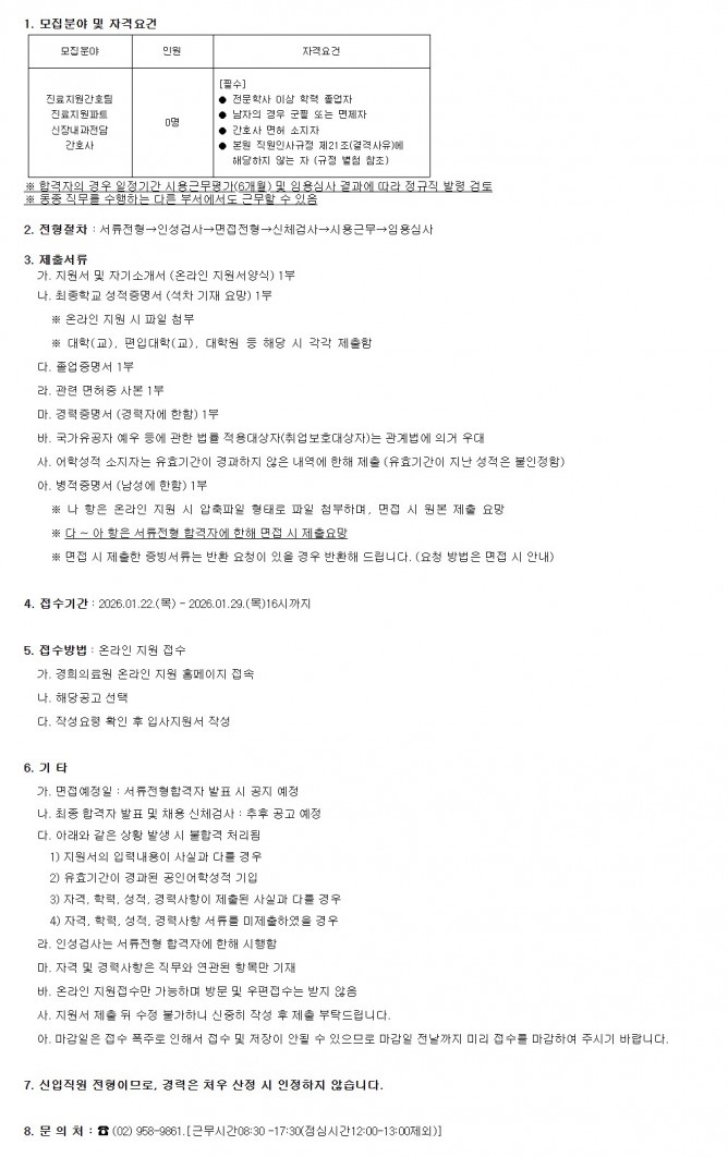 26.01.22 ~ 26.01.29정규직 신입직원 [신장내과전담 간호사] 공개채용 모집