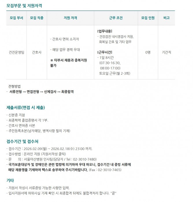 26.02.09 ~ 26.02.18건진운영팀 간호사 모집