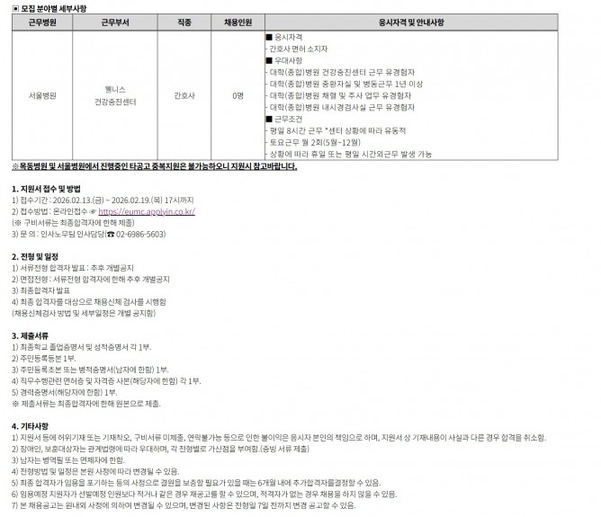 26.02.13 ~ 26.02.19웰니스건강증진센터 계약직 간호사 공개채용 공고