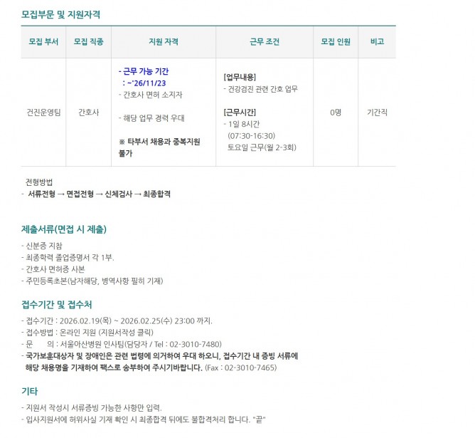 26.02.19 ~ 26.02.25건진운영팀 간호사 모집