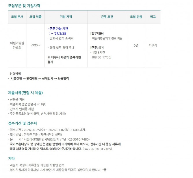 26.02.25 ~ 26.03.02어린이병원간호팀 간호사 모집