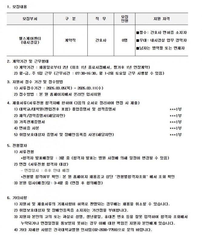 26.03.05 ~ 26.03.11헬스케어센터(내시경실) 간호사 채용