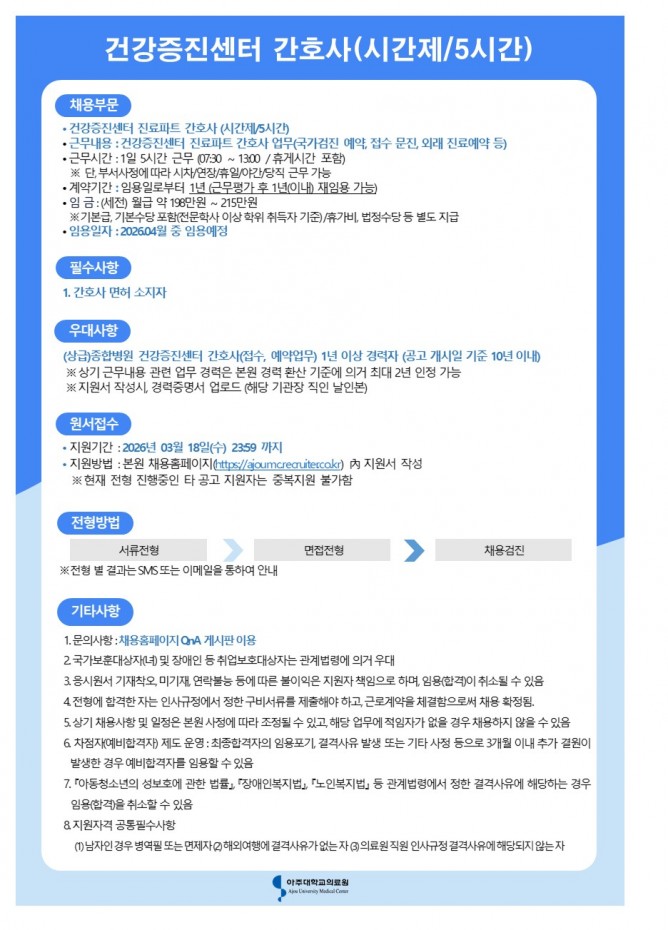 26.03.12 ~ 26.03.18건강증진센터 간호사(시간제/5시간)
