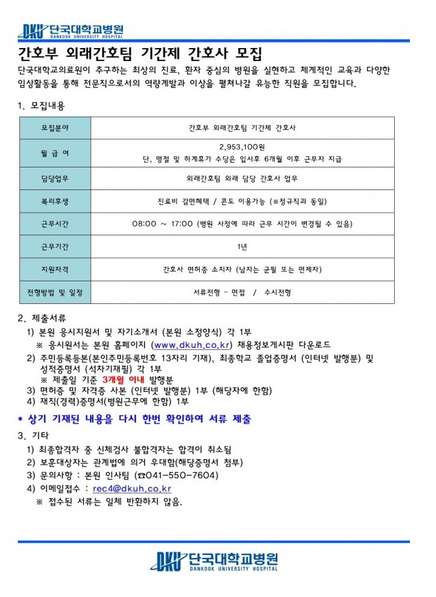 26.04.15 ~ 26.04.21간호부 외래간호팀 기간제 간호사 모집
