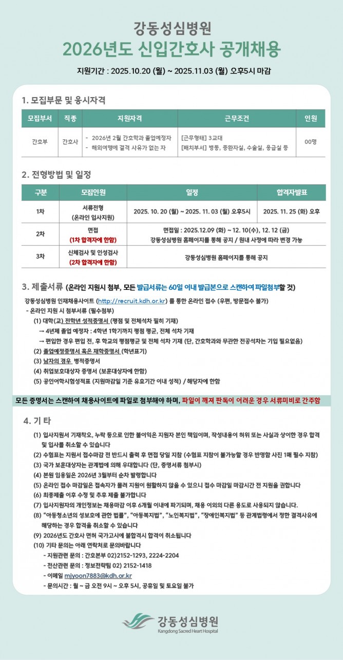 25.10.13 ~ 25.11.03[강동성심병원] 2026년도 신입간호사 공개채용