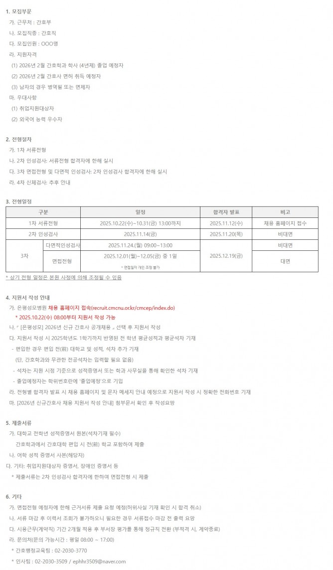 25.10.22 ~ 25.10.31은평성모병원 2026년 신규간호사 채용