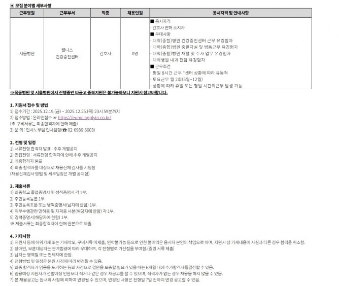 25.12.19 ~ 25.12.25웰니스건강증진센터 계약직 간호사 공개채용 공고