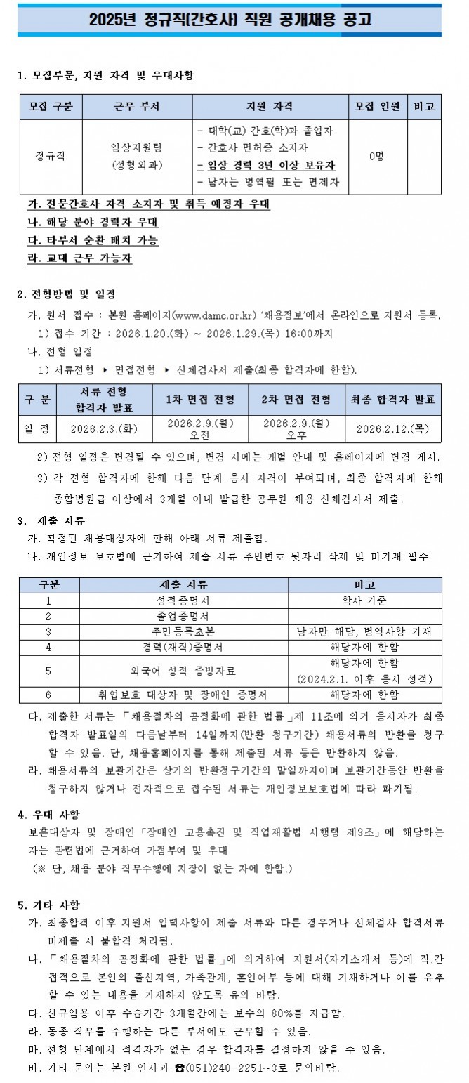 26.01.20 ~ 26.01.292025년 정규직(간호사/성형외과) 직원 공개채용 공고
