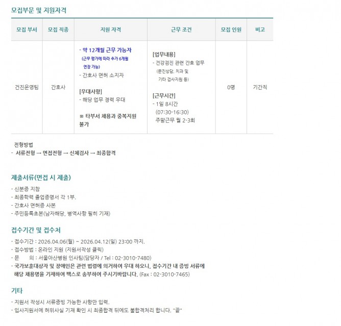 26.04.06 ~ 26.04.12건진운영팀 간호사 모집